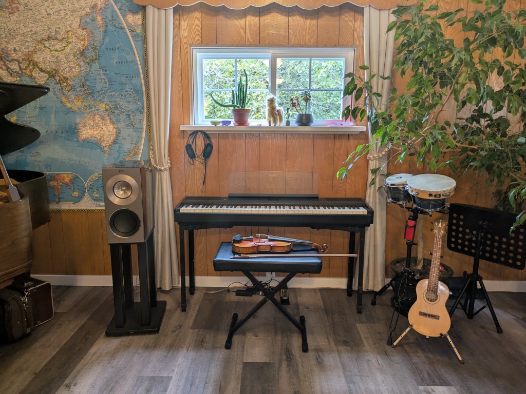 Located at 12811 Madeira Park Road, just off the highway, Best Practice Music Studio is convenient, welcoming, and wheelchair accessible. Family of students are welcome to sit and read a book, have a cup of tea or coffee, and watch the learning take place. With a 1952 George Steck baby grand piano, Yamaha P515 electric keyboard, and oodles of other musical supplies, we are fully equipped for whatever musical journey we embark on together!